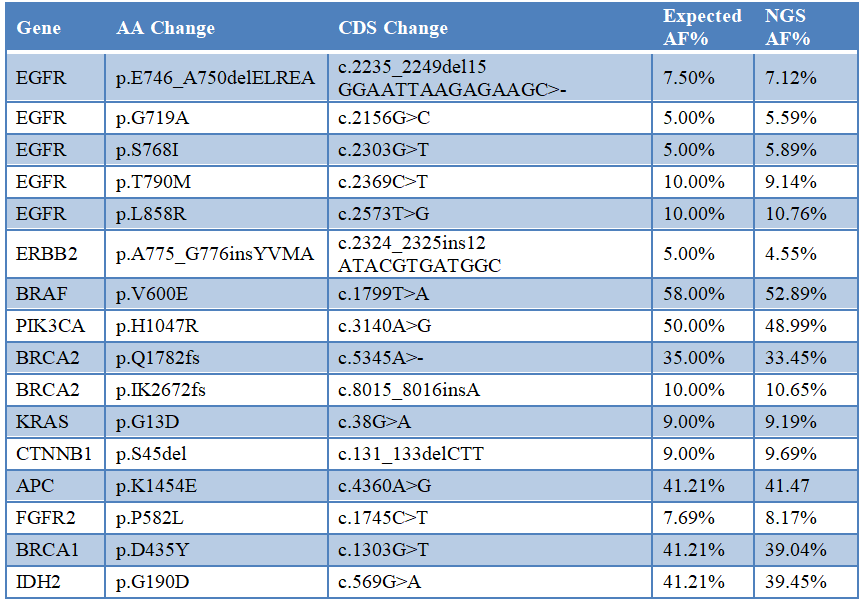 這是一款針對大panel基因設定的參考品、質(zhì)控品、標準品,可用于檢測流程的QC驗證,包含準確性、重復性、檢測限