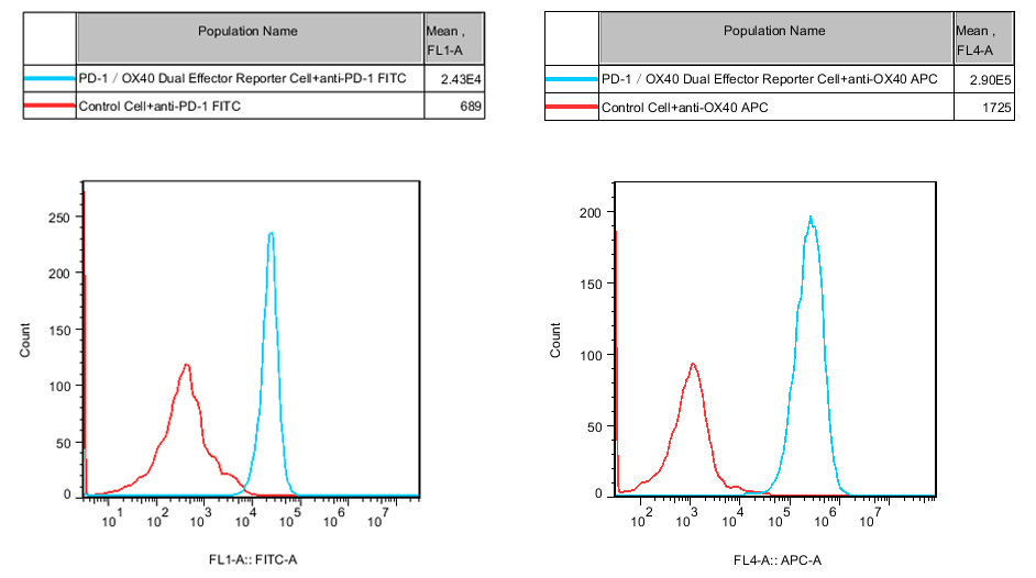 Figure 2. Recombinant PD1&OX40 Dual Effector Reporter Cell constitutively expressing PD1 and OX40.