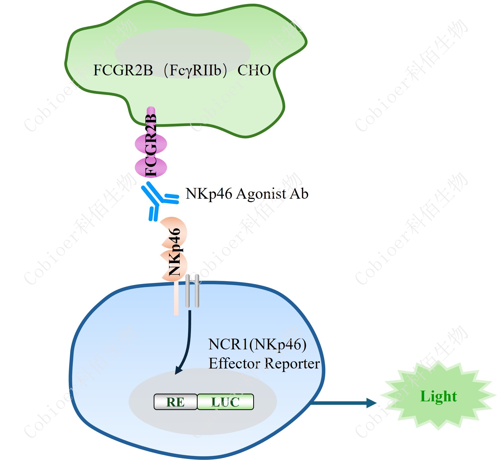 NCR1(NKp46) Effector Reporter 報告基因藥靶模型很好的模擬了體內 NKp46 的信號轉 導過(guò)程,原理見(jiàn)下圖 所示。![]() Figure 1. NCR1(NKp46) Effector Reporter 細胞模型原理圖