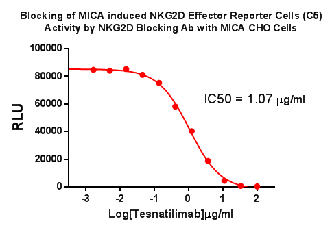 Figure 2. Blocking of MICA induced NKG2D Effector Reporter Cells (C5) Activity by NKG2D Blocking Ab with MICA CHO Cells. |