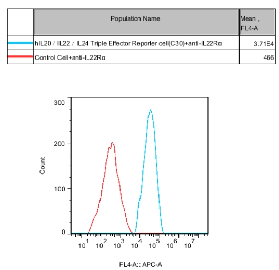 Figure 1. Recombinant hIL20/IL22/IL24 Triple Effector Reporter Cell stably expressing IL22Rα. |