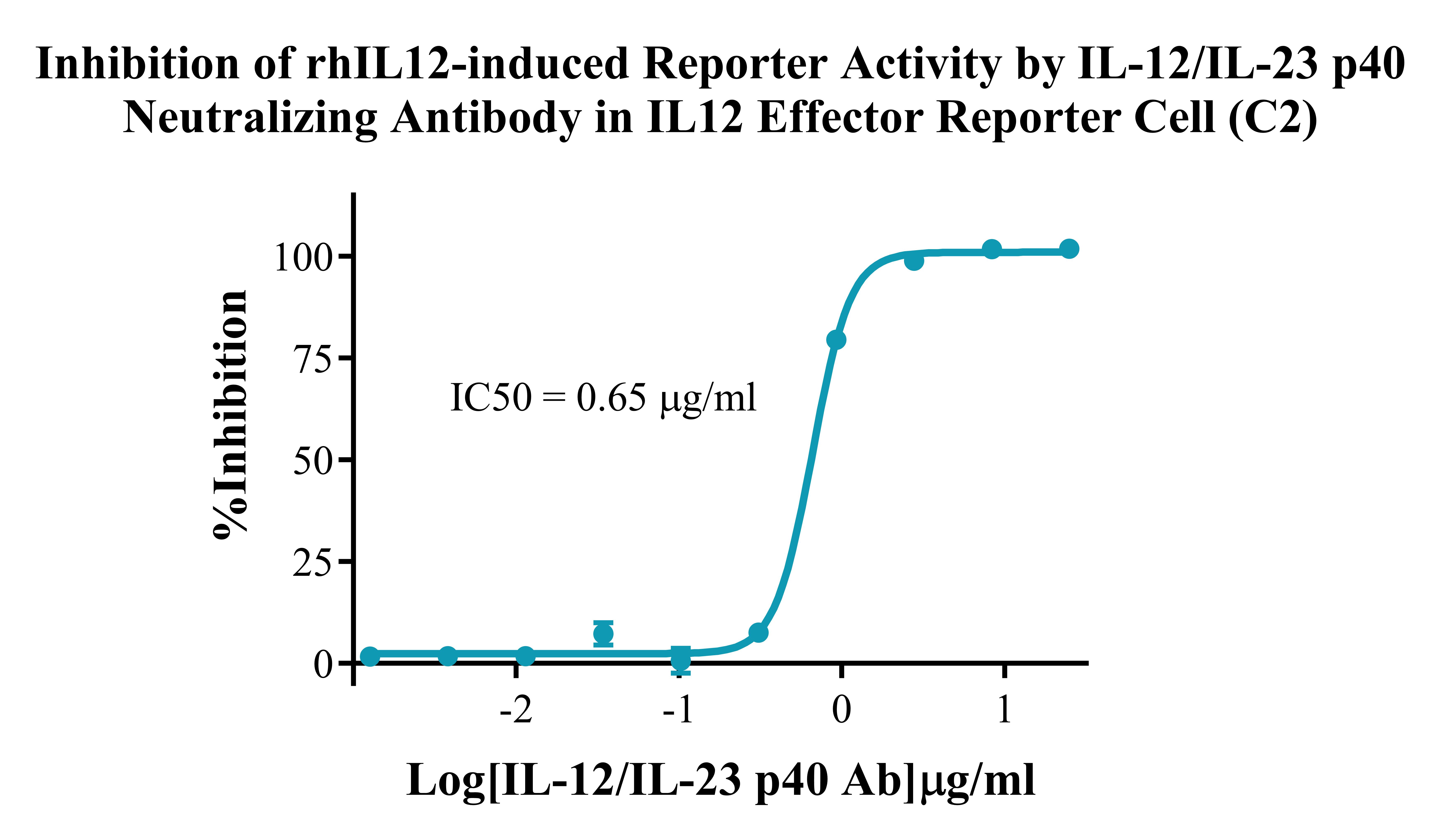 Figure 3. Inhibition of rhIL12-induced Reporter Activity by IL-12/IL -23 p40 Neutralizing Antibody in IL12 Effector Reporter Cells (C2). |