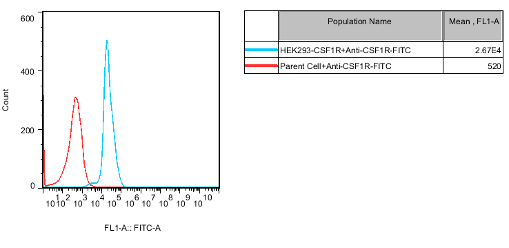 Figure 1. Recombinant HEK293 stably expressing human CSF1R (full-length human CSF1R cDNA (NP_005202) ). |