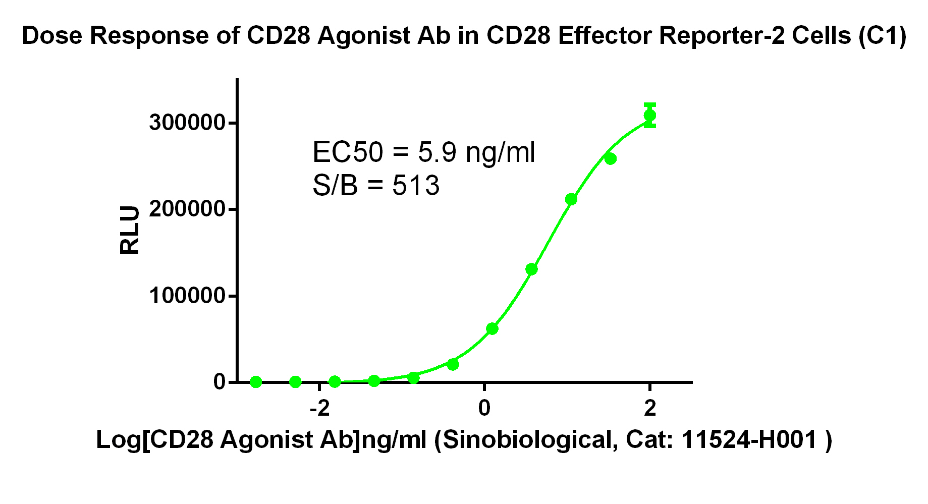 Figure 1. Dose Response of CD28 Agonist Ab in CD28 Effector Reporter-2 Cells (C1), the EC50 was 5.9ng/ml.