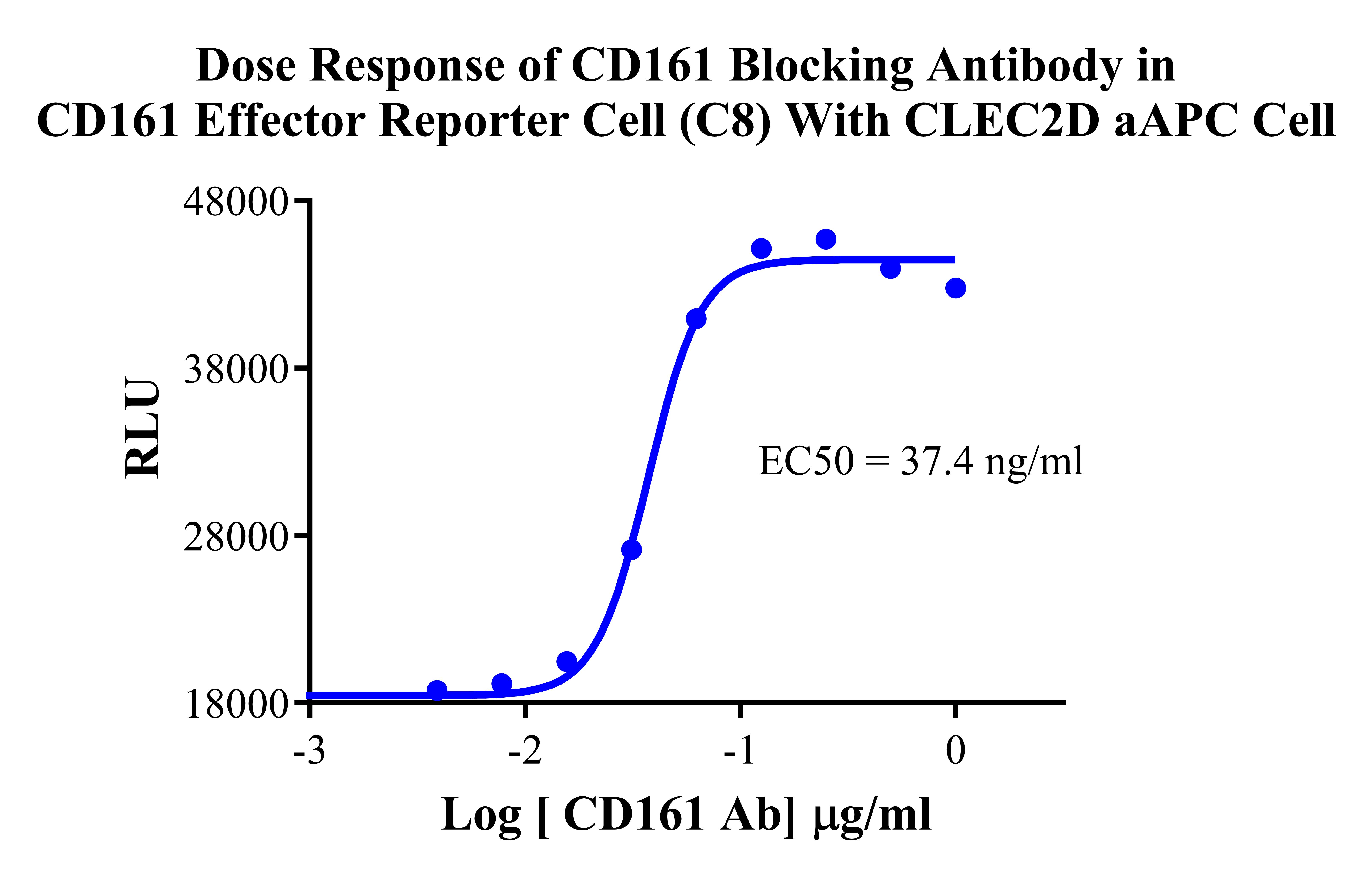 Figure 1. Dose Response of CD161 Blocking Antibody in CD161 Effector Reporter Cells (Clone 8) With CLEC2D aAPC Cells. |