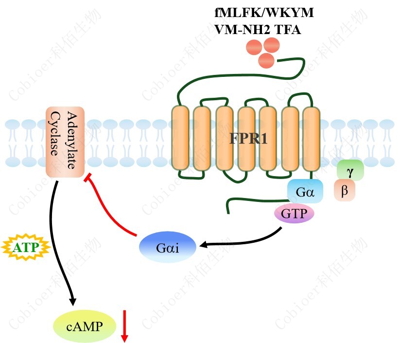 甲酰肽受體(FPR)屬于 G 蛋白偶聯(lián)受體(GPCR)家族,是趨化受體和模式識別受 體(PRR),可識別細菌和線(xiàn)粒體衍生的甲?;?。FPRs 家族包括三個(gè)成員(FPR1、 FPR2 和 FPR3),它們在多種組織和細胞類(lèi)型中廣泛表達,調節多種生物功能,如血管生 成、細胞增殖和防止細胞死亡。 |