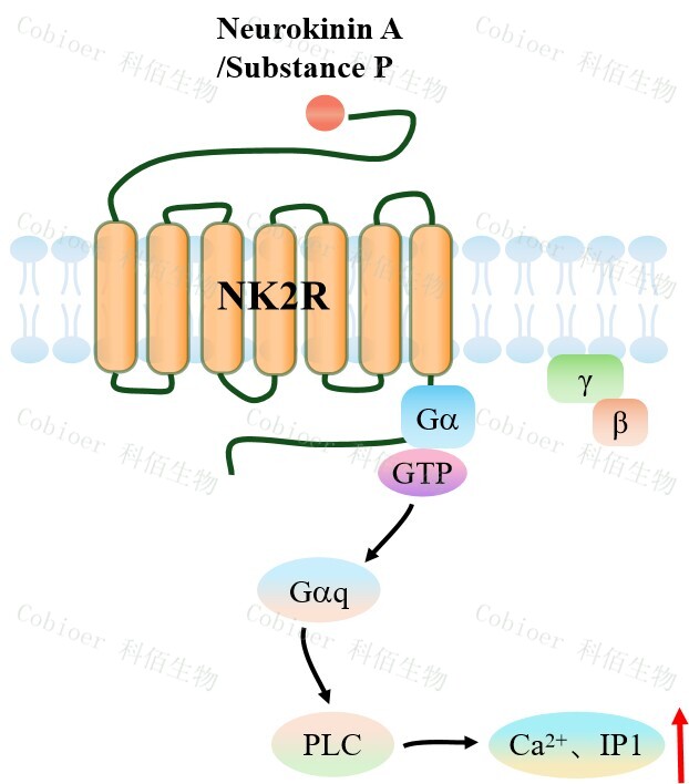 | 速激肽(Tachykinins )是分布在哺乳動(dòng)物中樞和周?chē)窠?jīng)系統中的一類(lèi)神經(jīng)肽。速激 肽物質(zhì) P(SP)、神經(jīng)激肽 A(NKA)和神經(jīng)激肽 B(NKB)共享一個(gè)保守的 C 端基序, 對速激肽受體(NK1R、NK2R 和 NK3R)的激活至關(guān)重要。NKA 優(yōu)先激活與 Gα偶聯(lián)的 NK2R,而 SP 和 NKB 分別優(yōu)先結合 NK1R 和 NK3R。三種速激肽都能夠在所有速激肽受 體類(lèi)型中表現為完全激動(dòng)劑。 NK2R 是一種 GPCR,普遍存在于中樞和周?chē)窠?jīng)系統,然而,有研究發(fā)現,NK2R 與 血紅蛋白 A1c(HbA1c)水平顯著(zhù)相關(guān)。HbA1c 是評估長(cháng)期血糖控制的重要指標,表明 NK2R 可能在糖代謝調控中發(fā)揮關(guān)鍵作用。 | |
