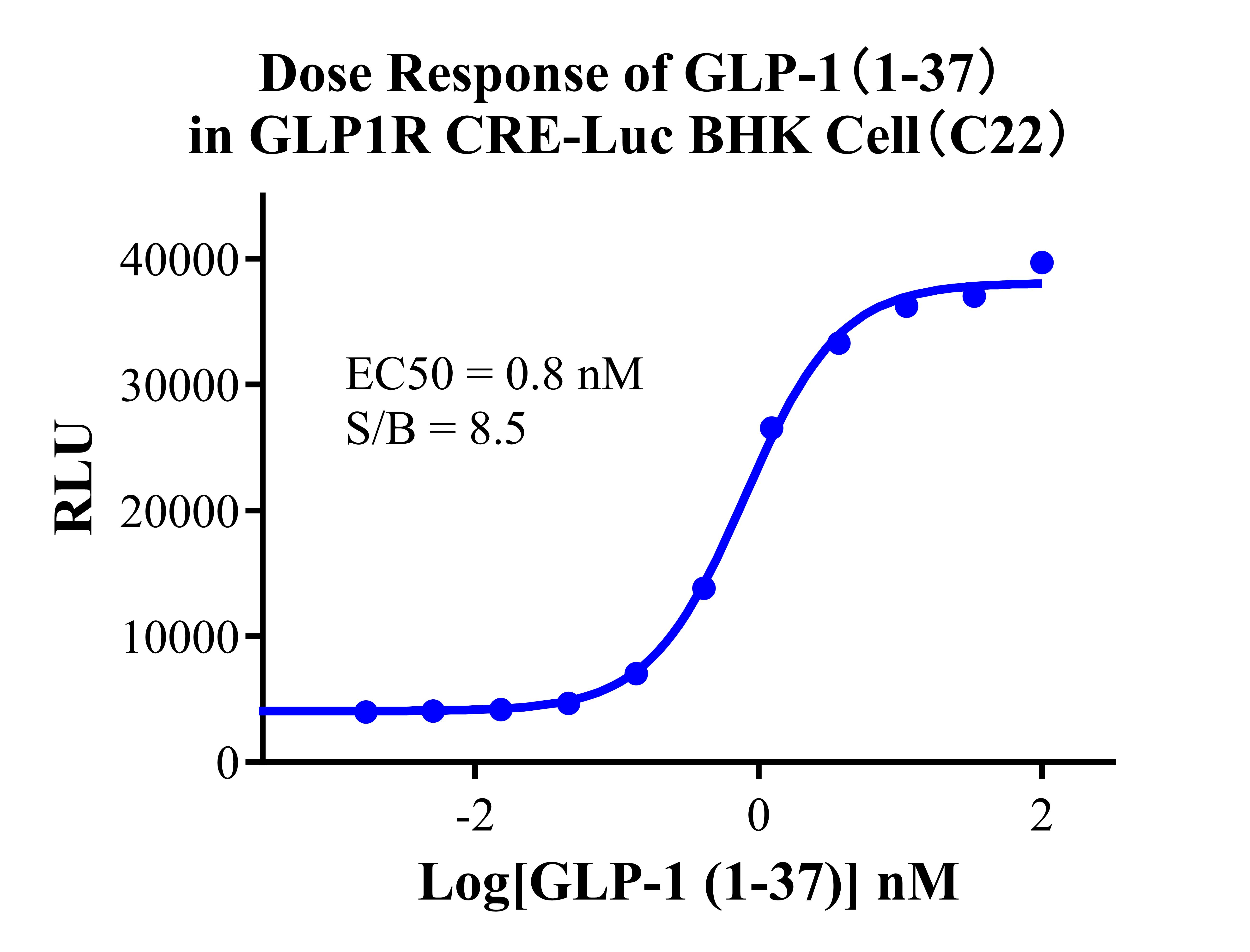 Figure 2.Dose response of GLP-1(1-37) in GLP1R CRE-Luc BHK Cell(C22). |