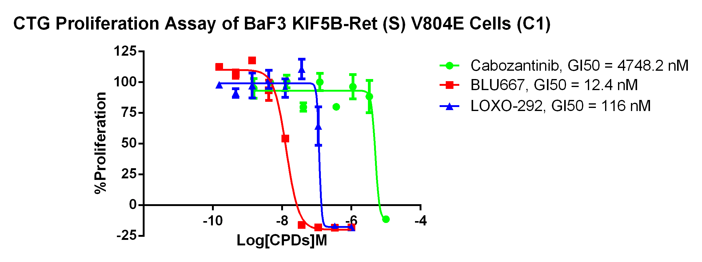 Figure 4. CTG Proliferation Assay of BaF3 KIF5B-Ret (S) V804E Cells (C1).