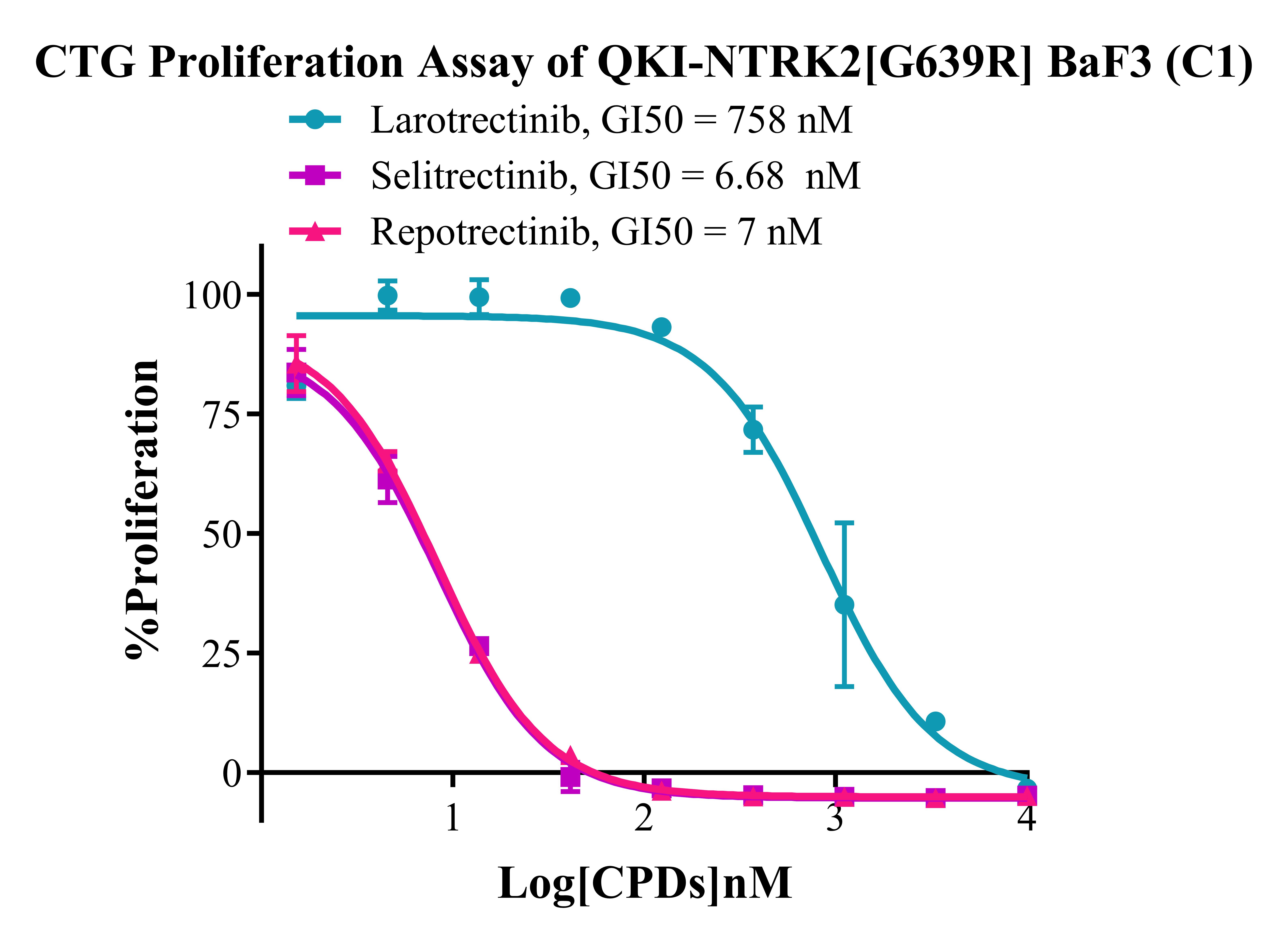 Figure 2. CTG Proliferation Assay of  QKI-NTRK2 [G639R] BaF3 (C1).