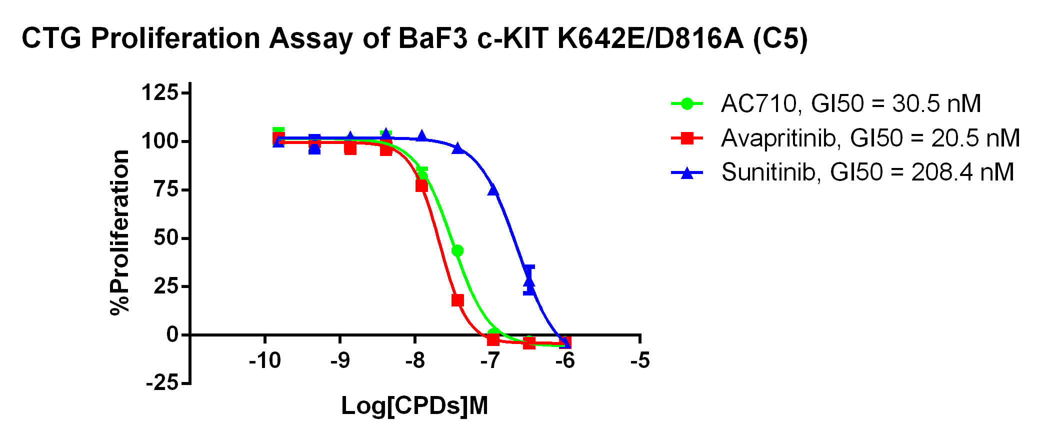 Figure 3.CTG Proliferation Assay of BaF3 c-KIT K642E/D816A (C5).