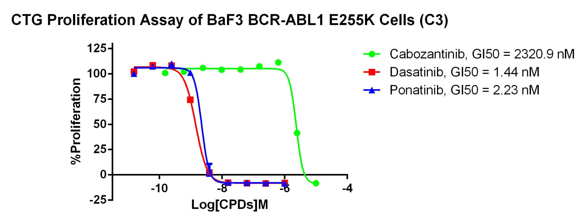 Figure 4. CTG Proliferation Assay of BaF3 BCR-ABL1 E255K Cells (C3). |