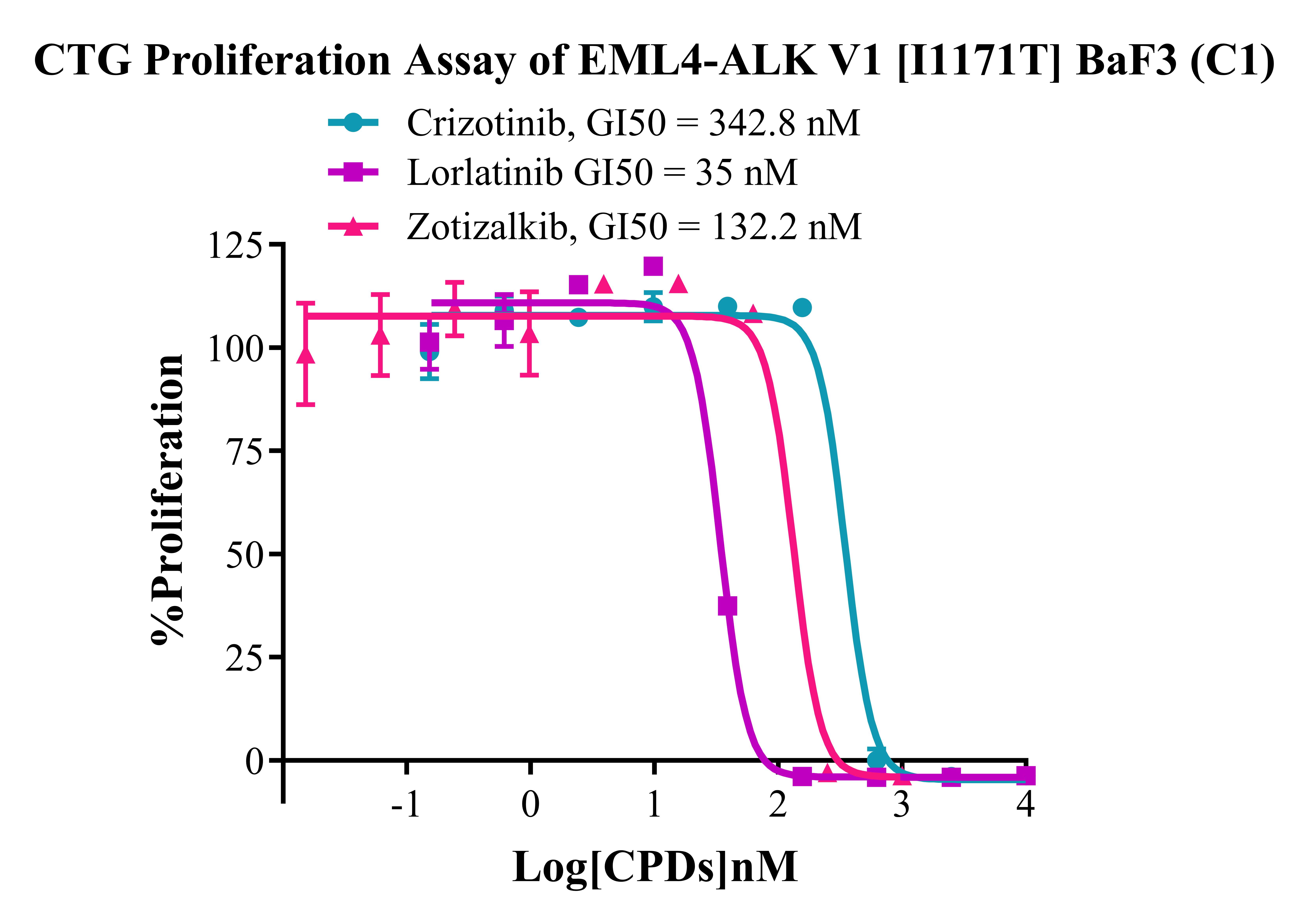 Figure 4. CTG Proliferation Assay of EML4-ALK V1 [l1171T] BaF3(C1).
