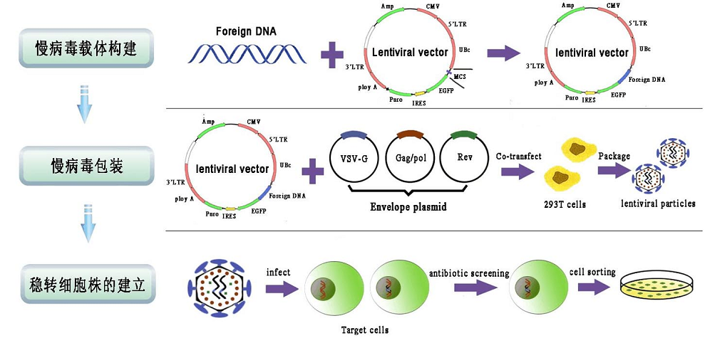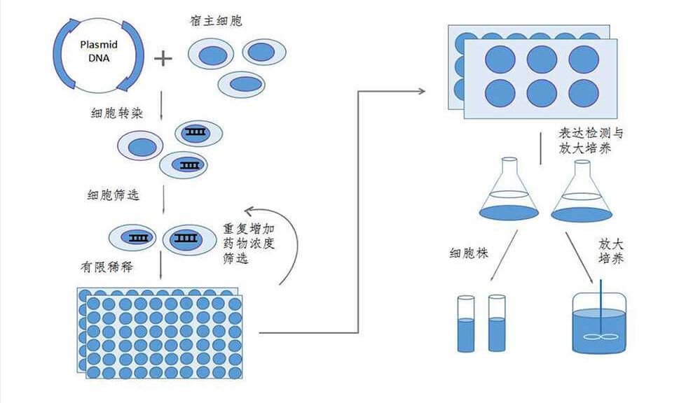 穩定細胞株構建的基本原理是用基因導入工具或基因編輯工具,改造原始細胞基因組,使改造后的細胞具有某些特定表型,并經(jīng)過(guò)抗性篩選或其他篩選方法,使其表型能長(cháng)期傳代穩轉。