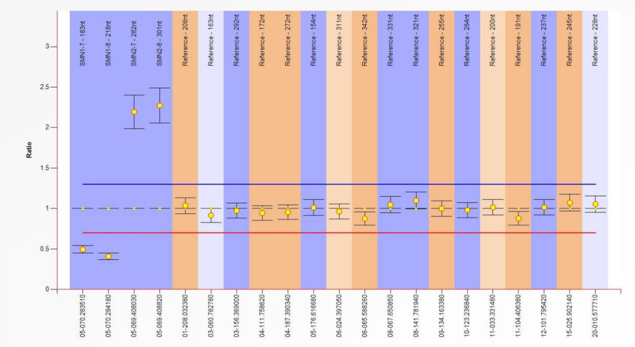 | Description | Spinal muscular atrophy (SMA) is an autosomal recessive neuromuscular disease characterized by progressive muscle weakness and atrophy caused by the degeneration of motor neurons in the anterior horn of the spinal cord. The disease is the number one fatal genetic disease in infancy, and it is estimated that there is one case in every 10,000 live births; the carrier rate of the general population is about 1/50, and the carrier rate of the domestic population is about 1/42. |