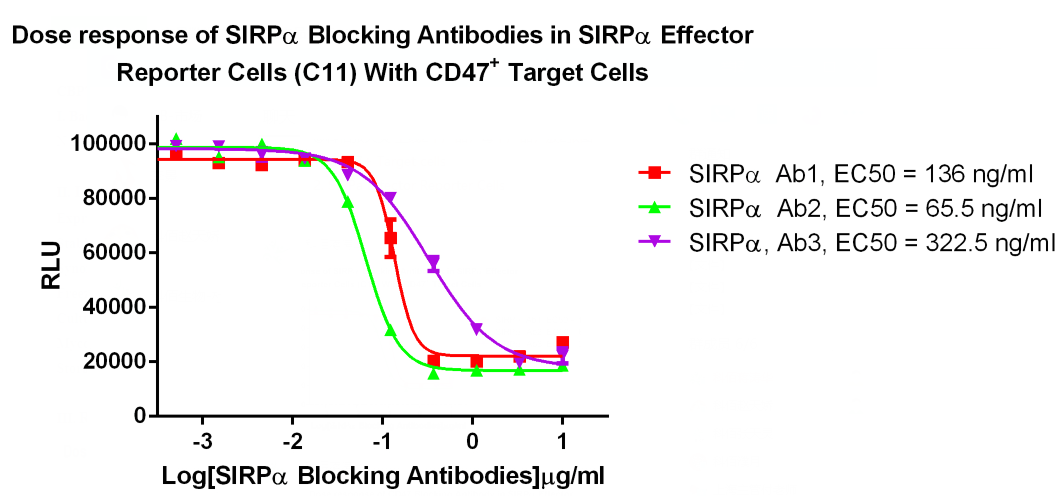 Figure 3. Dose response of CD47 Blocking Antibody in SIRPɑ Effector Reporter Cells(C11) With CD47+ Target Cells. |