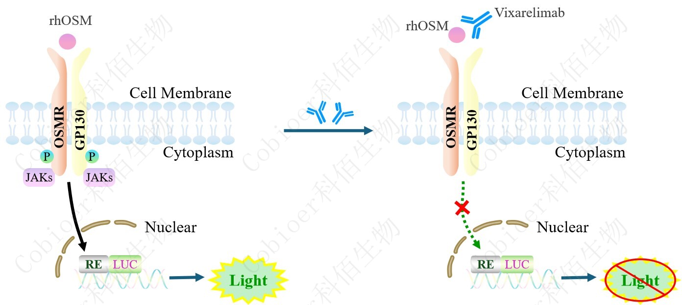 OSMR Effector Reporter Cell 報告基因藥靶模型很好的模擬了體內 OSMR 的信號轉導過(guò)程,原理見(jiàn)圖所示。![]() Figure 1. OSMR Effector Reporter Cell 細胞模型原理圖 |