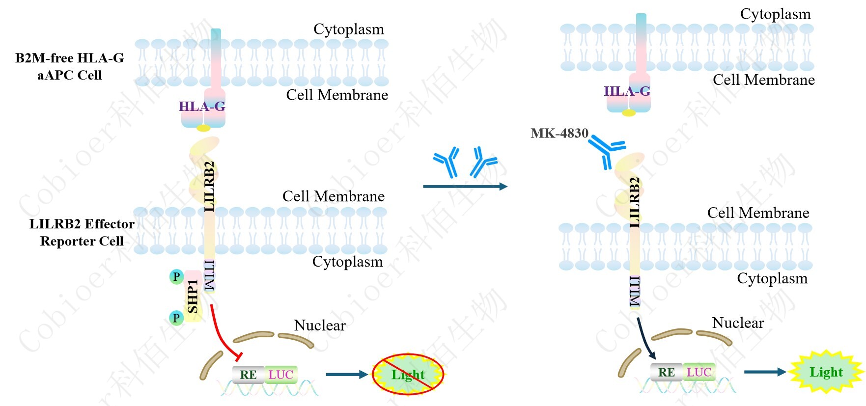 LILRB2 Effector Reporter Cell 報告基因藥靶模型很好的模擬了體內 LILRB2 的信號轉 導過(guò)程,原理見(jiàn)下圖所示。![]() ![]() Figure 1. LILRB2 Effector Reporter Cell 模型原理圖 |