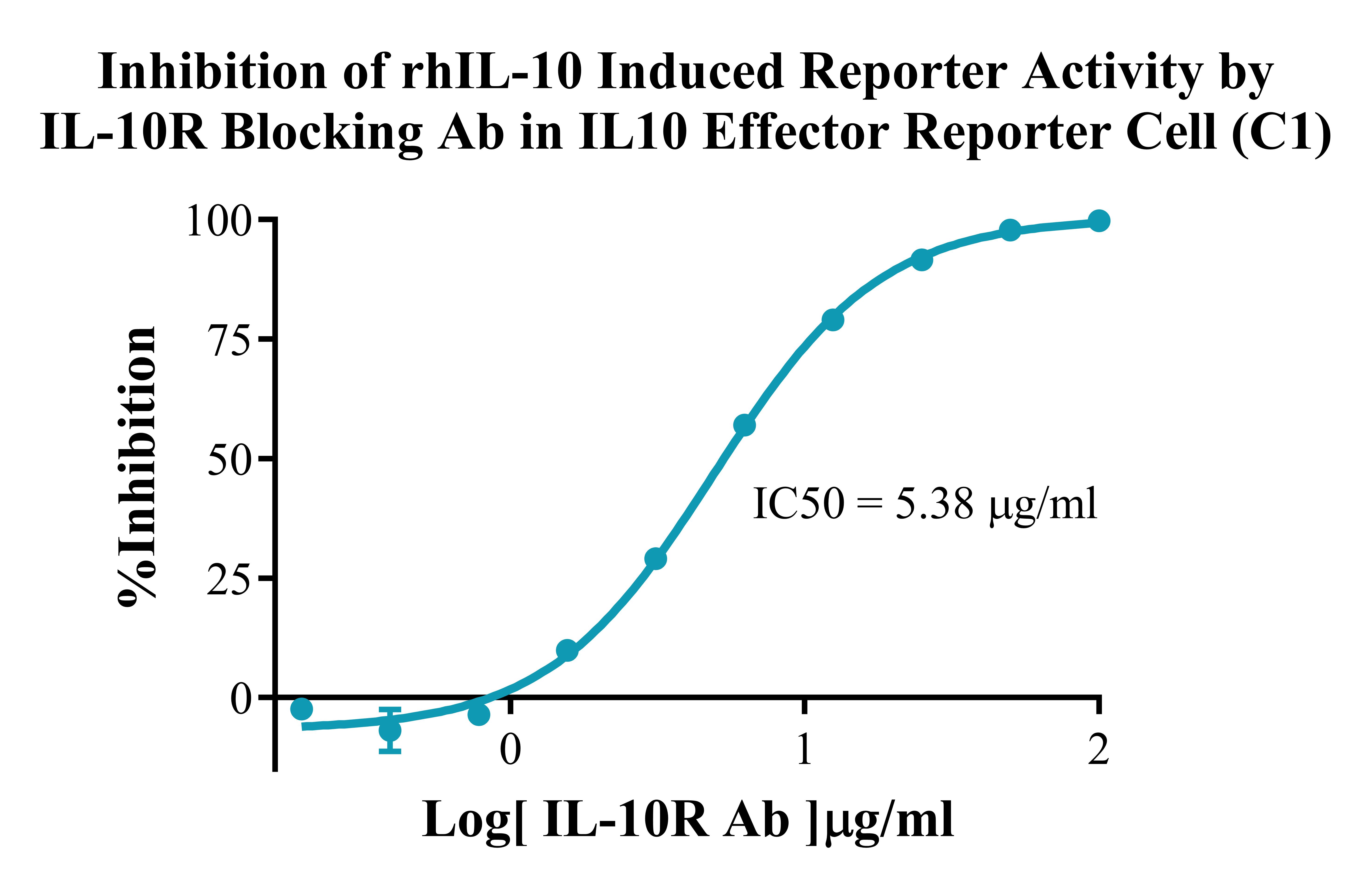 Figure 3.Inhibition of rhIL-10 Induced Reporter Activity by IL-10R Blocking Ab in IL 10 Effector Reporter Cell(C1).