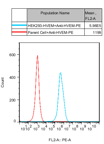 | HVEM HEK293 細胞在 HEK293 細胞的基礎上,穩定表達人 HVEM。 | |