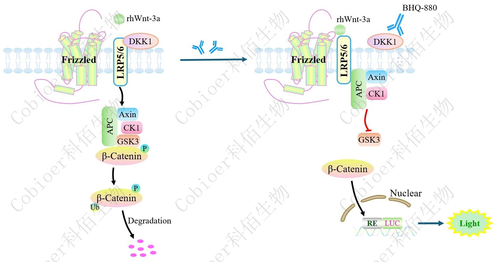 DKK1 Effector Reporter Cell 報告基因藥靶模型很好的模擬了體內 WNT 的信號轉導過(guò)程,原理見(jiàn)下圖所示。