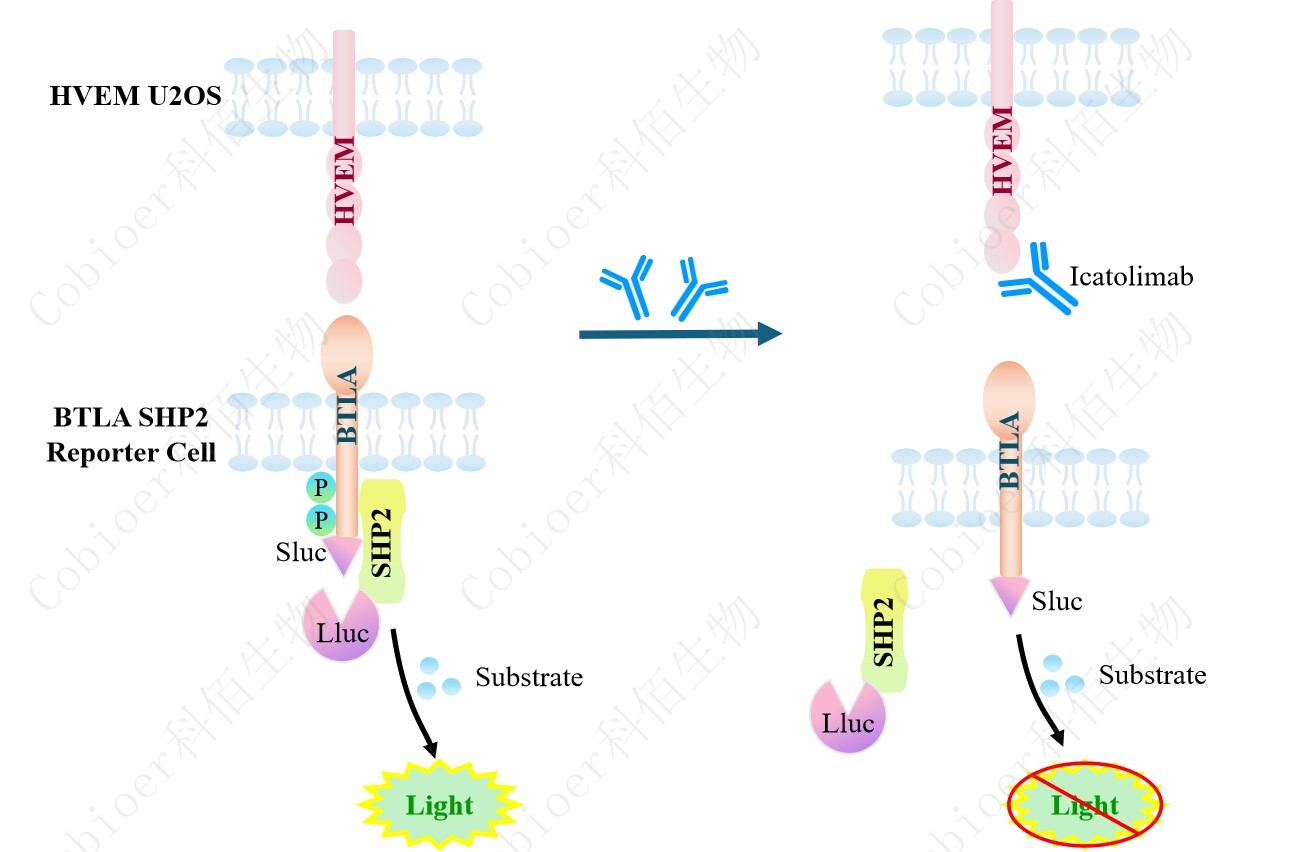 BTLA SHP2 Reporter Cell 報告基因藥靶模型很好的模擬了體內 BTLA/SHP2 的信號轉導過(guò)程,原理見(jiàn)下圖所示。![]() Figure 1. BTLA SHP2 Reporter Cell 細胞模型原理圖 |