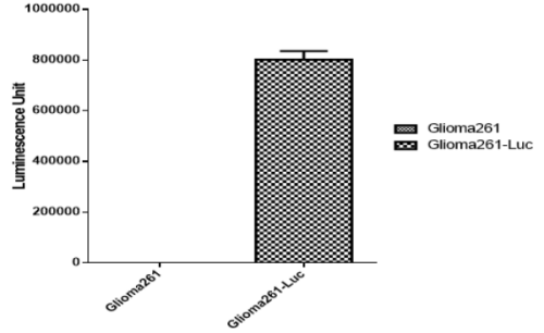 Figure. Stablity test results. Glioma261-Luc cells showed at least 32 passage stability with similar luminescence unit. |