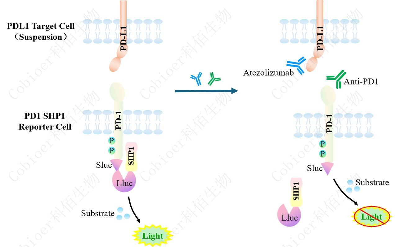 PD1 SHP1 Reporter Cell 報告基因藥靶模型很好的模擬了體內 PD1/SHP1 的信號轉導過(guò) 程,原理見(jiàn)下圖所示。![]() Figure 1. PD1 SHP1 Reporter Cell 細胞模型原理圖 |