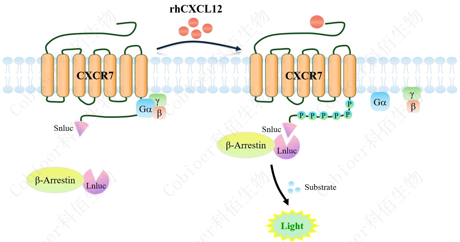 CXCR7 β-Arrestin CHO 報告基因藥靶模型很好的模擬了體內 CXCR7/β-Arrestin 的信號轉導過(guò)程,原理見(jiàn)下圖所示。