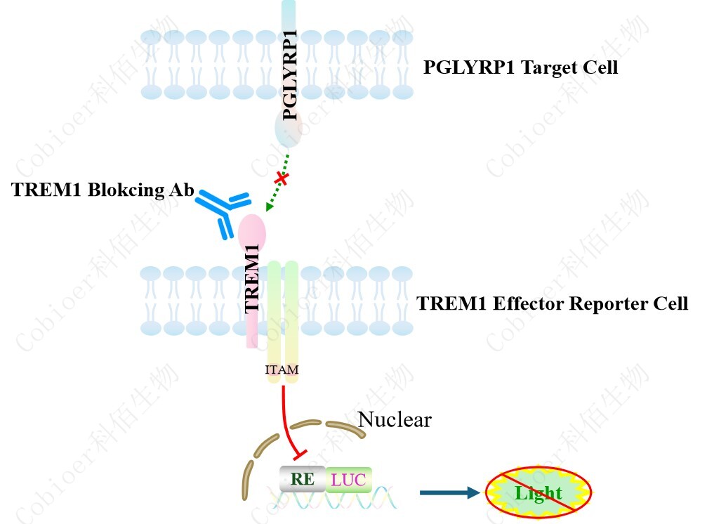 PGLYRP1 Target Cell 作為 TREM1 Effector Reporter Cell 的靶細胞,很好的模擬了體內 TREM1 的信號轉導過(guò)程,原理見(jiàn)下圖所示。