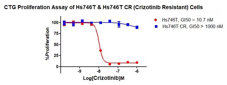 Figure 1. CTG Proliferation Assay of Hs746T & Hs746T CR (Crizotinib Resistant) Cells. |