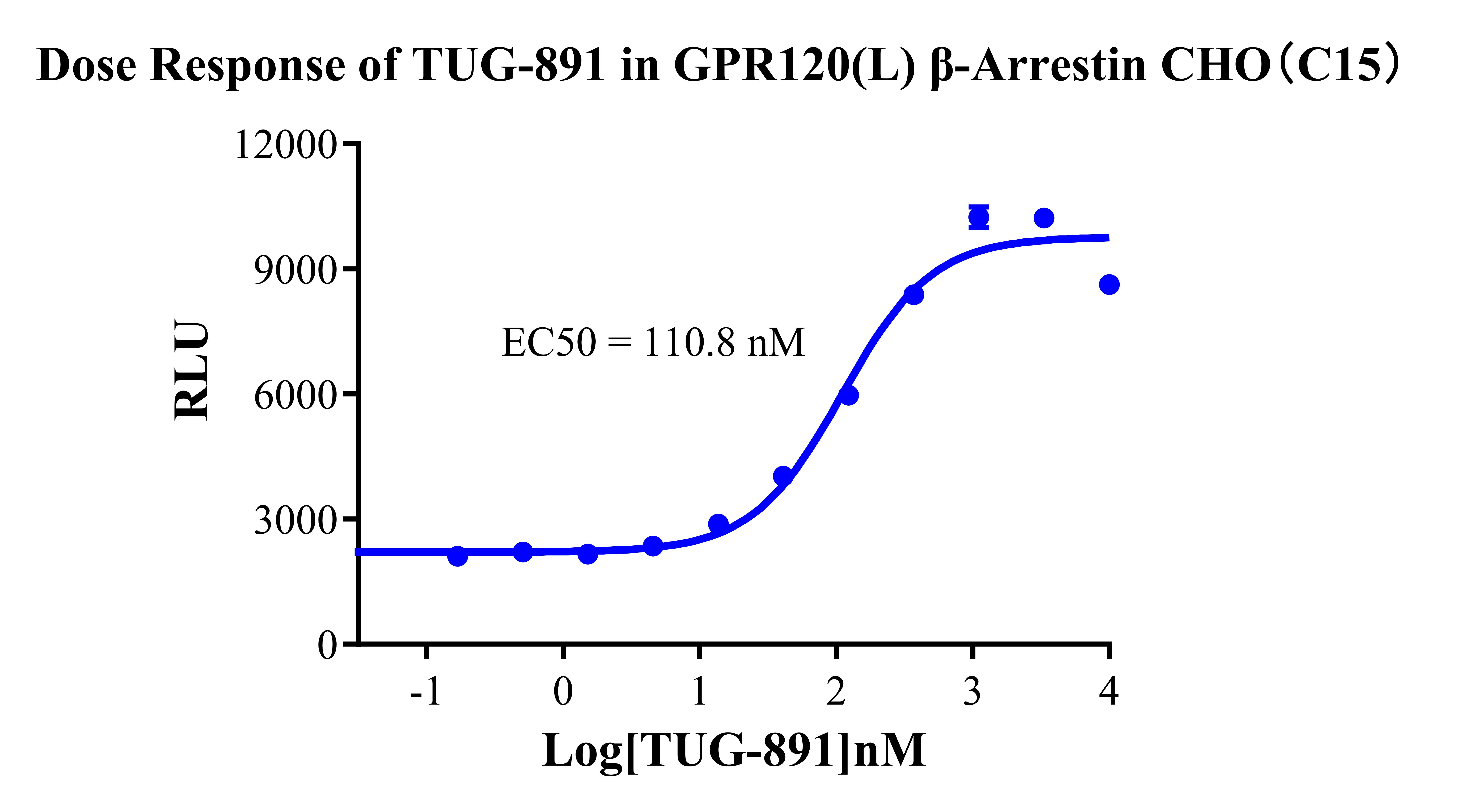Figure 2.Dose Response of TUG-891 in GPR120(L) β-Arrestin CHO (C15). |