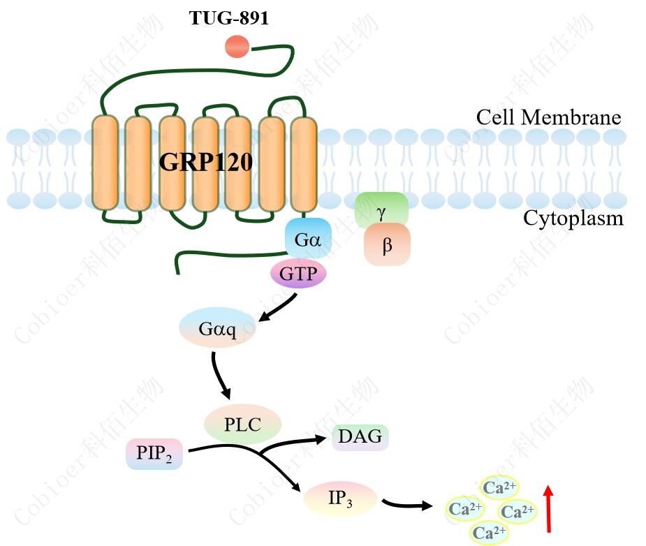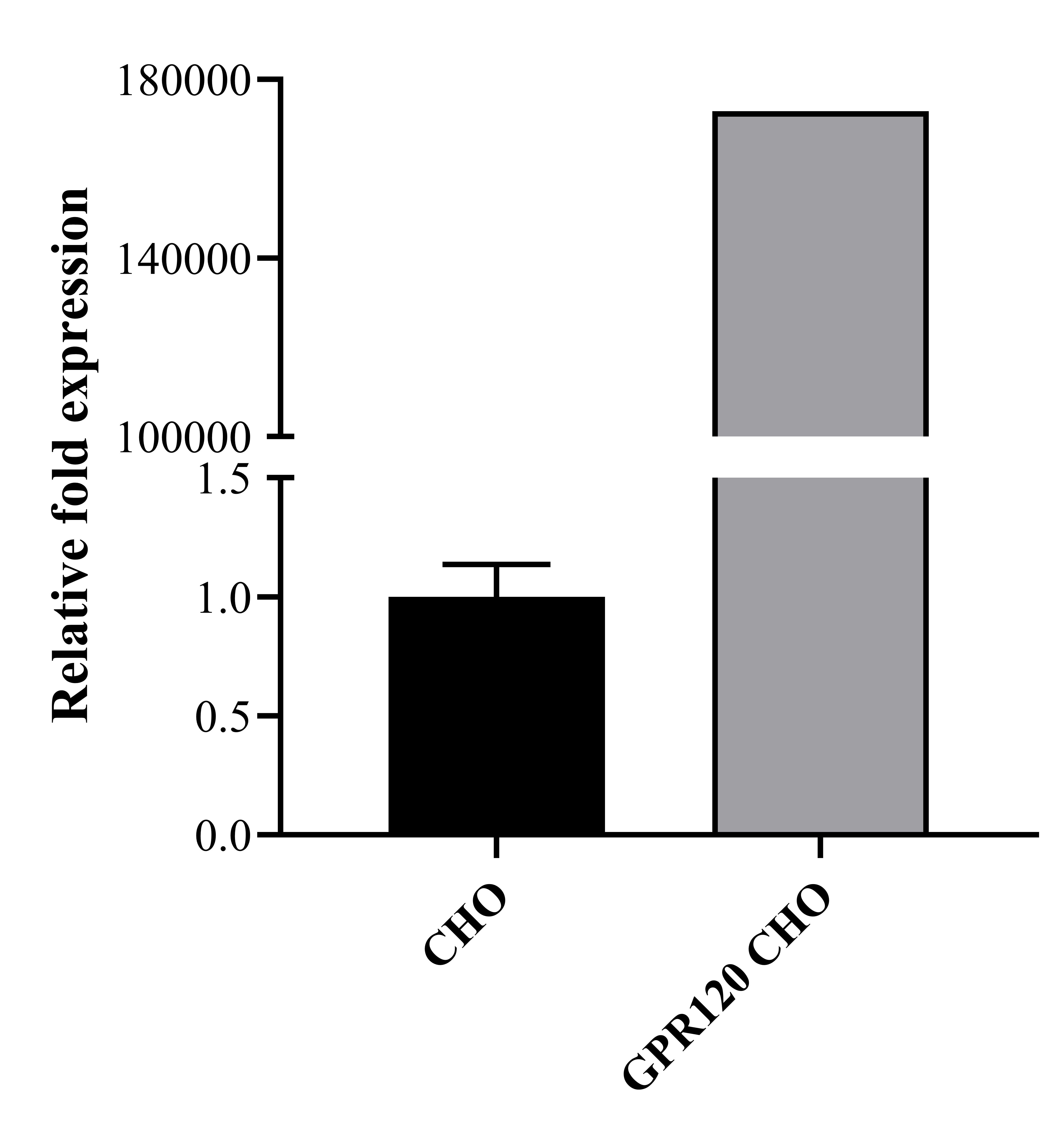 GPR120 與配體結合,導致 Gαq 亞基的激活,觸發(fā) PLC-γ,從而產(chǎn)生兩個(gè)第二信使: IP3 和 DAG,它們參與細胞內鈣動(dòng)員。GPR120 CHO 細胞藥靶模型很好的模擬了體內 GPR120 的信號轉導過(guò)程,原理見(jiàn)下圖所示。![]() Figure 1. GPR120 CHO 細胞模型原理圖 |