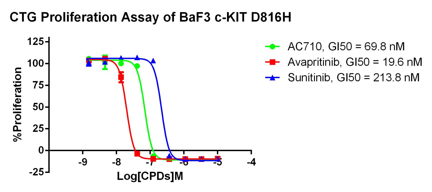 Figure 3. CTG Proliferation Assay of BaF3 C-KlT D816H.