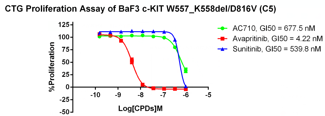Figure 4. CTG Proliferation Assay of BaF3 c-KIT W557_ K558del/D816V (C5). |