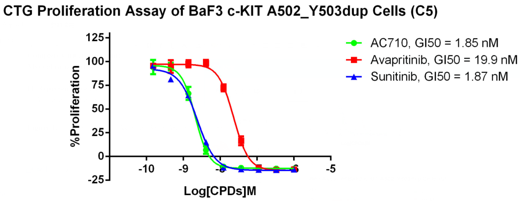 Figure 4. CTG Proliferation Assay of BaF3 C-KIT A502 _Y503dup Cells (C5). |