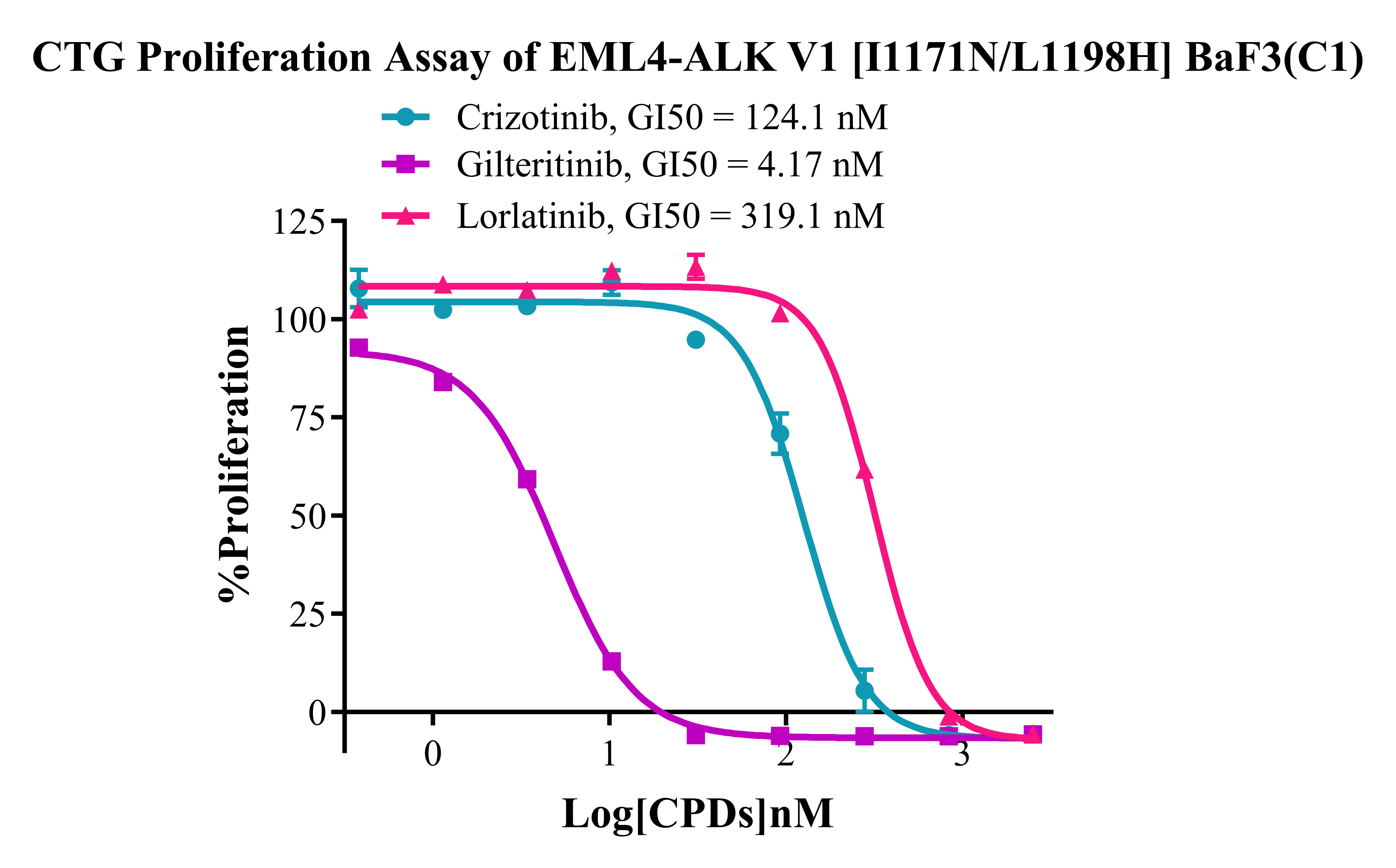 Figure 7. CTG Proliferation Assay of EML4-ALK V1 I1171N/L1198H BaF3(C1). |