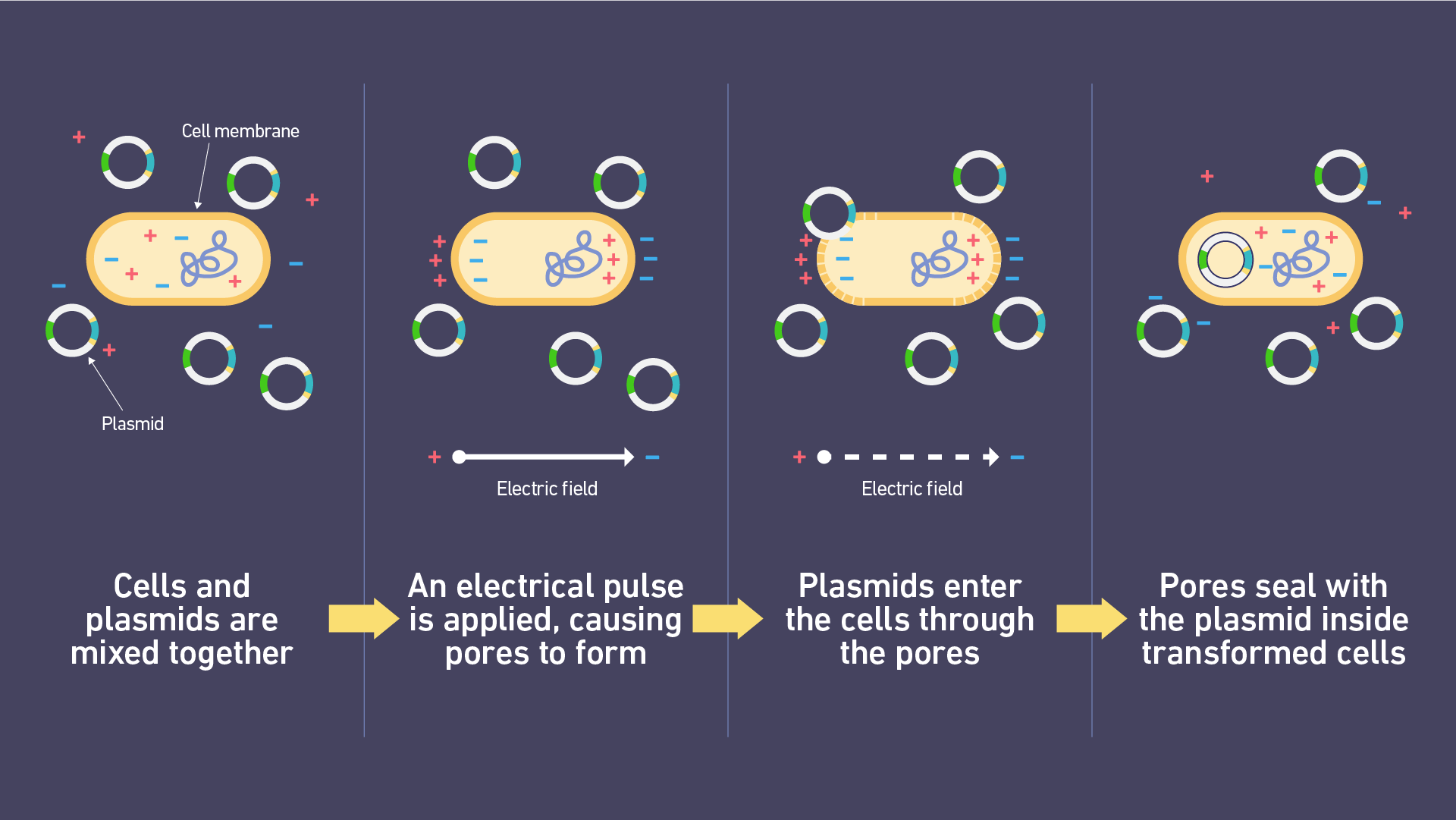 圖2:電穿孔過(guò)程中細胞膜破壞和孔隙形成的示意圖。圖片來(lái)源:Technology Networks。