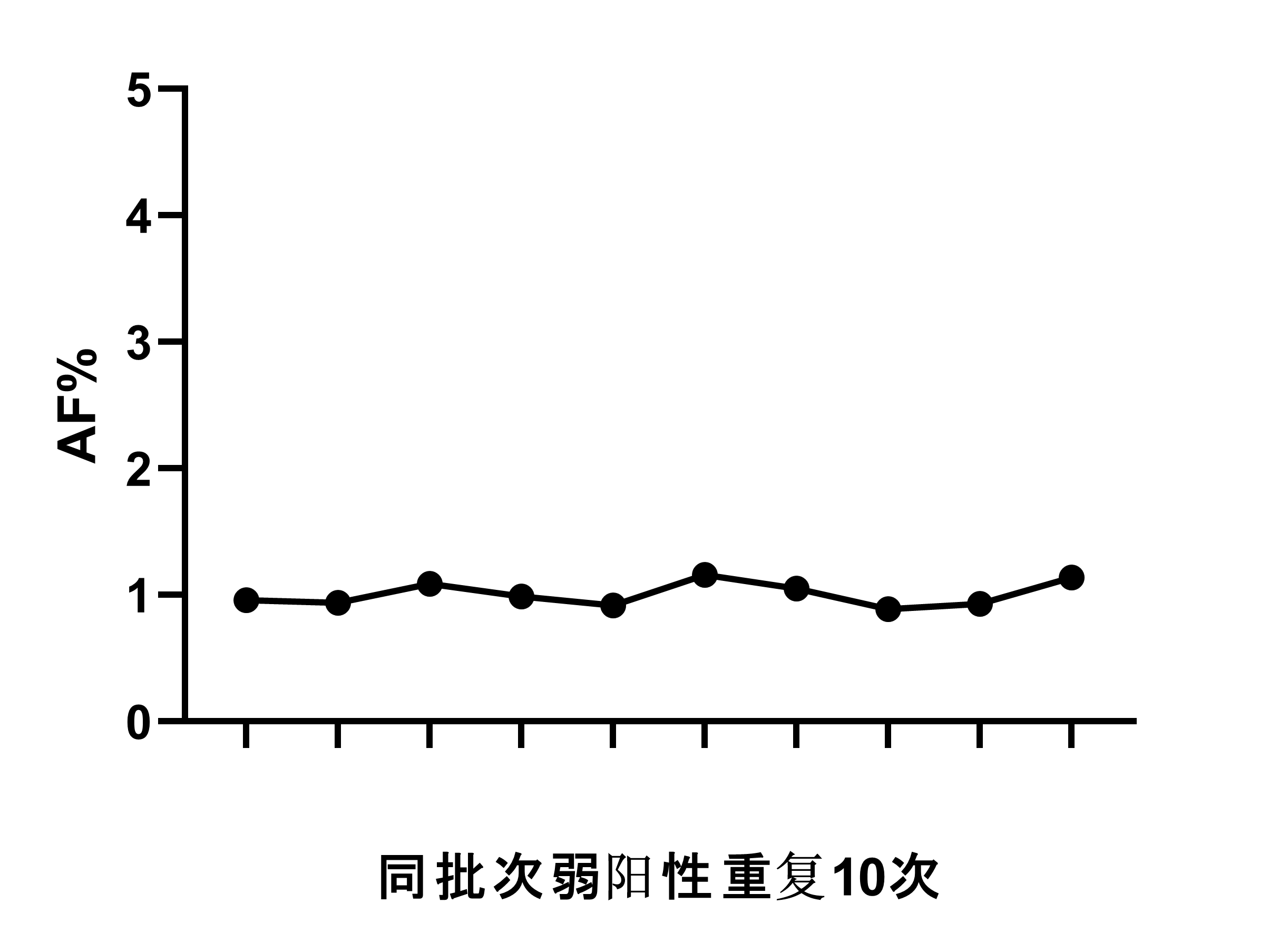 待測樣本:同一批號試劑盒對一份弱陽(yáng)性參考品進(jìn)行10次重復檢測