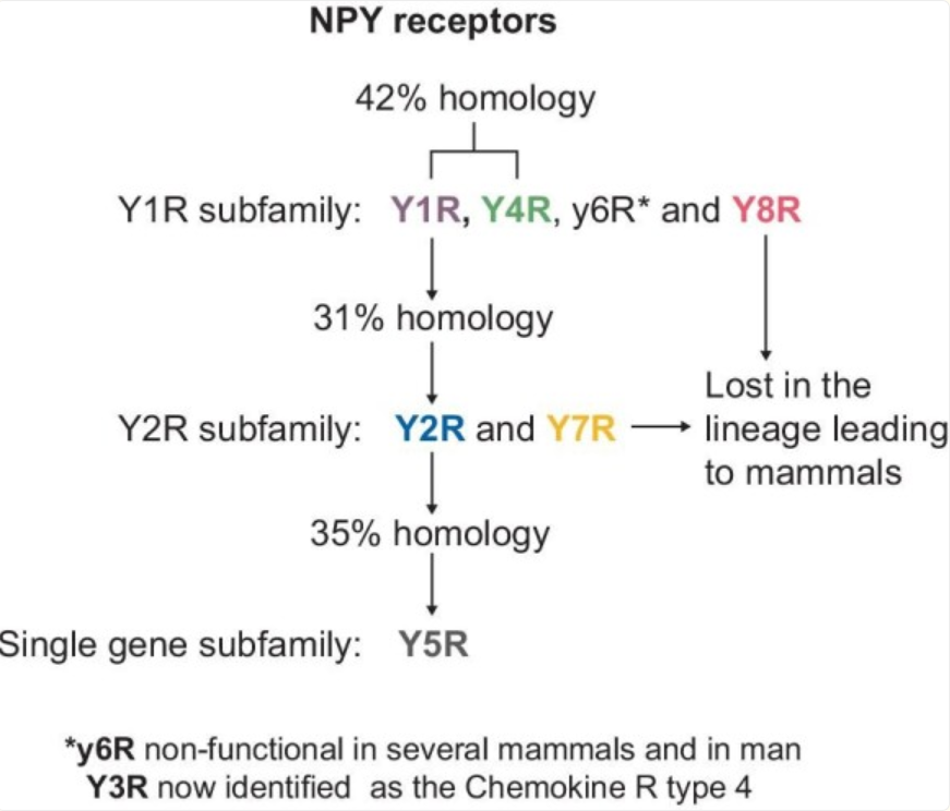 NPY受體被一個(gè)結構相關(guān)的富含酪氨酸的多肽家族激活,即NPY(神經(jīng)肽Y),PYY(肽酪氨酸-酪氨酸)和PP(胰腺多肽),它們具有36個(gè)氨基酸的共同長(cháng)度和一個(gè)修飾的C段。NPY是中樞和周?chē)窠?jīng)系統中最豐富的肽之一,在能量穩態(tài)中起著(zhù)重要作用。NPY參與應激反應、食欲刺激、晝夜節律、免疫和骨骼穩態(tài)等過(guò)程的中樞調節。在外周,NPY與去甲腎上腺素共同從交感神經(jīng)元釋放,影響代謝、心血管系統、骨骼健康和免疫反應。盡管NPY的表達和釋放在很大程度上與交感神經(jīng)系統活性相關(guān),但現在已知幾種細胞對NPY有反應,NPY系統的失調與幾種病理狀況有關(guān),包括肥胖、心血管疾病、糖尿病和胰島素抵抗,這些狀況也經(jīng)常伴有蛋白尿和CKD。