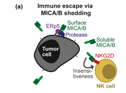 近年來(lái),也有文章揭露NKG2D的可溶性配體如MICA/B可以限制免疫檢查點(diǎn)阻斷的功效,介導惡性腫瘤細胞逃避免疫識別途徑。